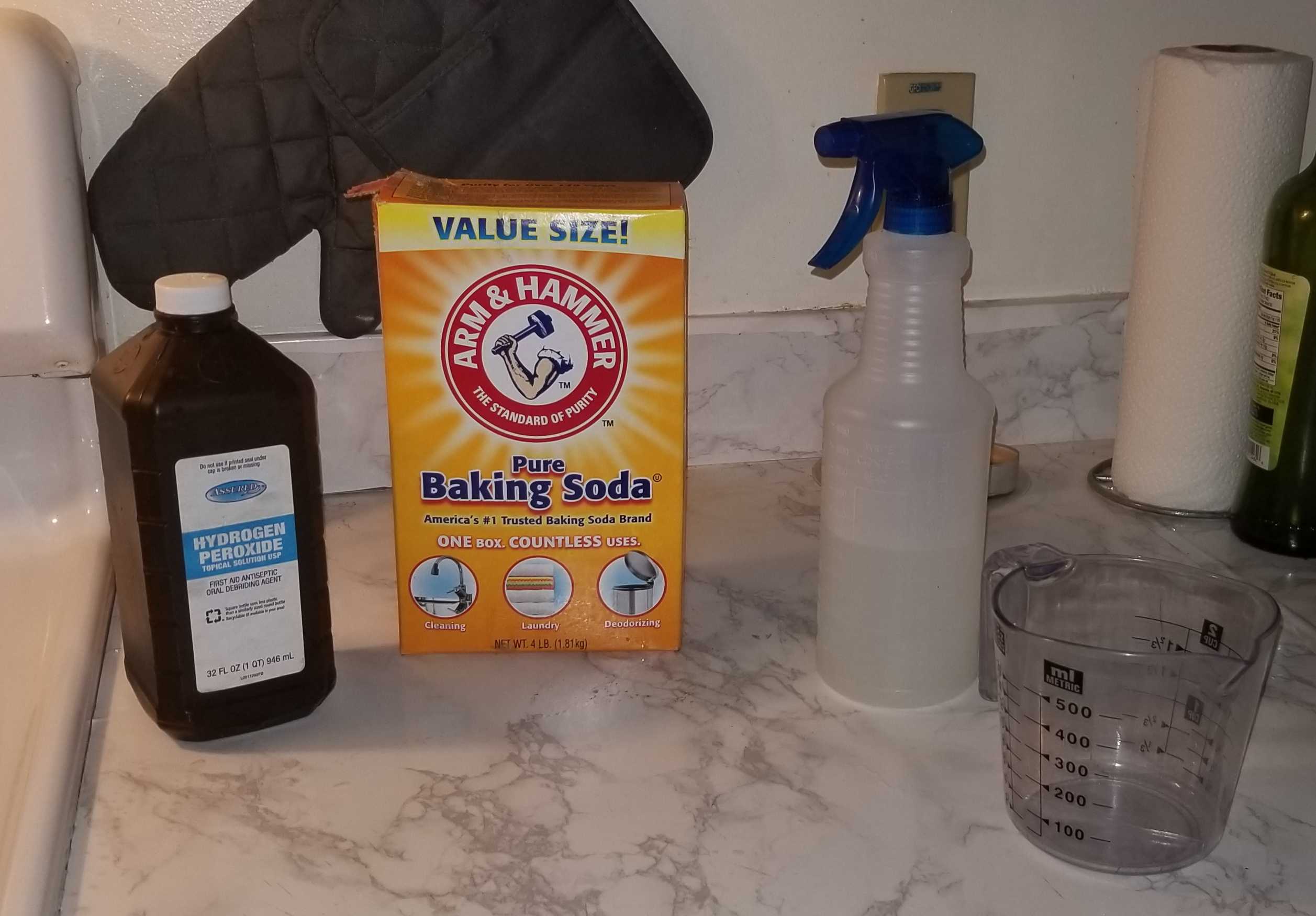 What was needed: baking soda, peroxide, spray bottle, and water. Timer,fan,& vacuum
